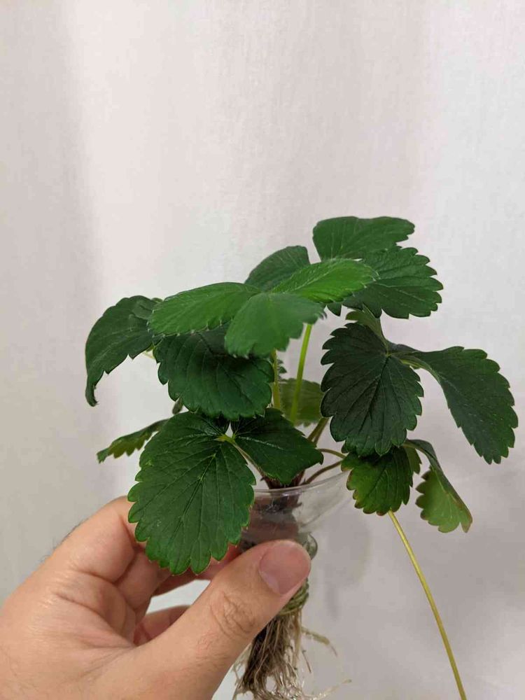 実生でペットボトル水耕栽培してる🍓とちおとめ