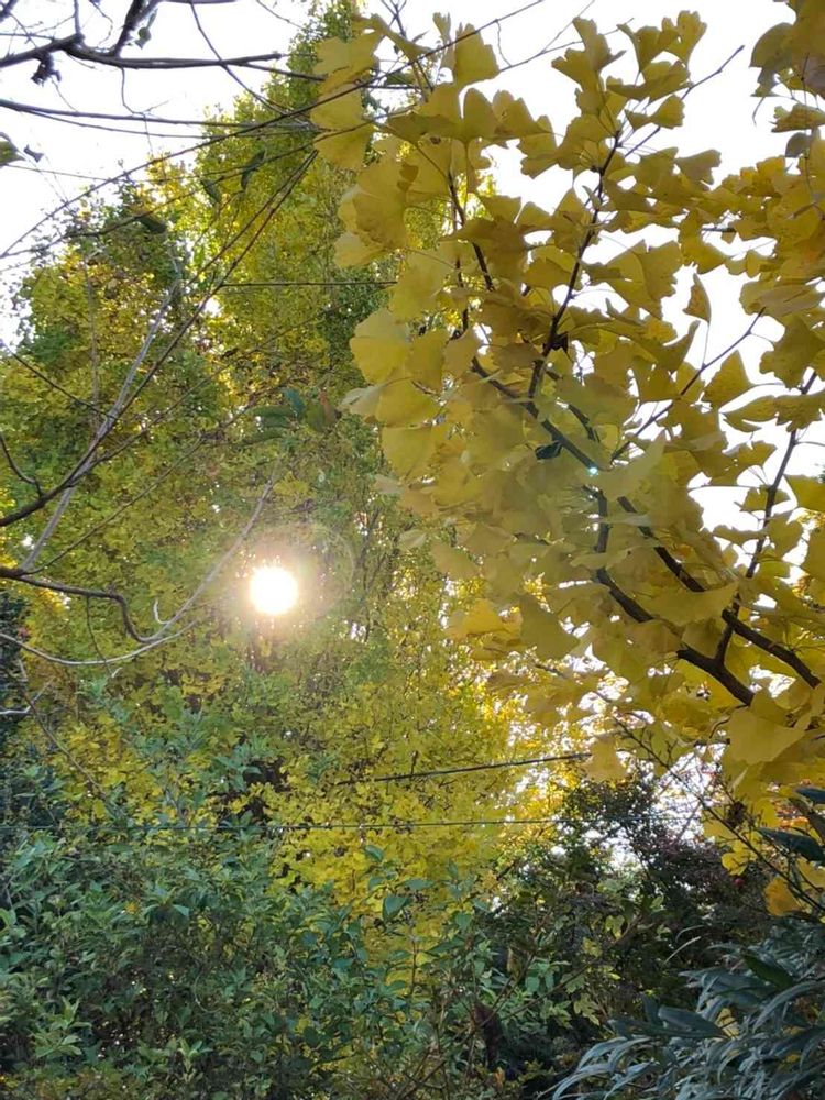 夕陽がいちょうの木の間から…キ・レ・イ✨