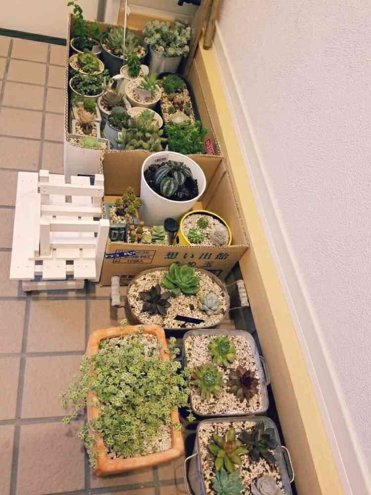 狭い玄関に ところ狭しと並んでいる多肉さんたち😅