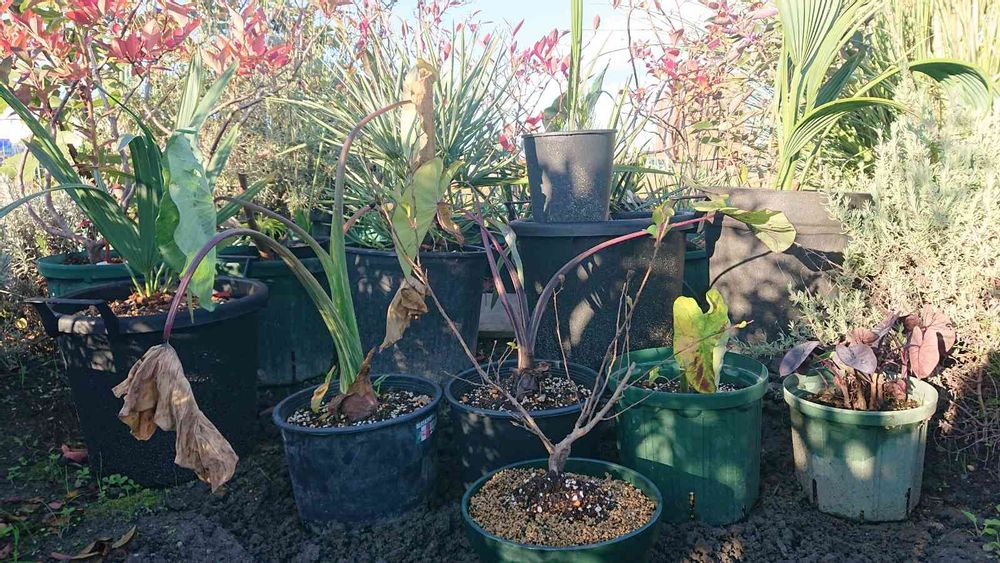 コロカシアたちとサルスベリを持って帰って植え替えて畑に戻してまた来年に会いましょう。