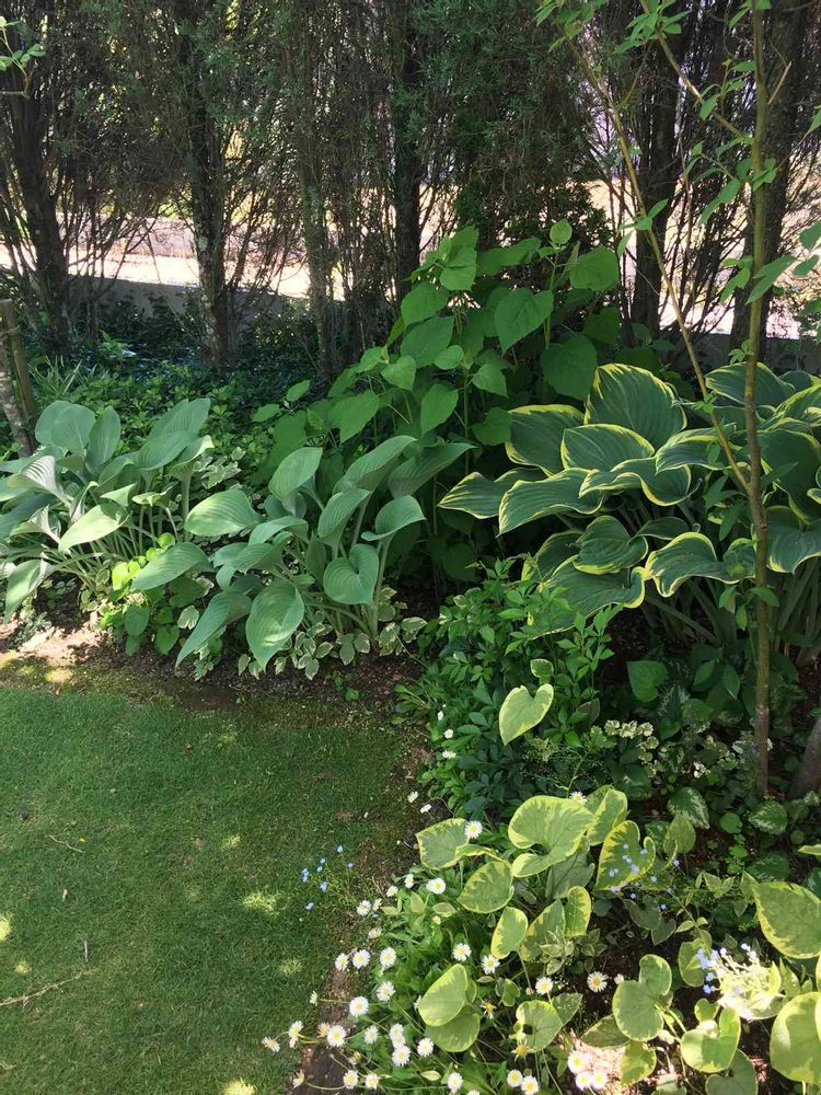 すこし日陰で、芝生。涼しげなopen gardenしてるお家のお庭。
