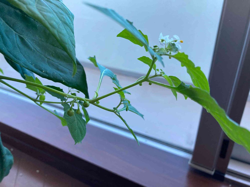 植木鉢の雑草が育って白い花が咲き、実も付きました