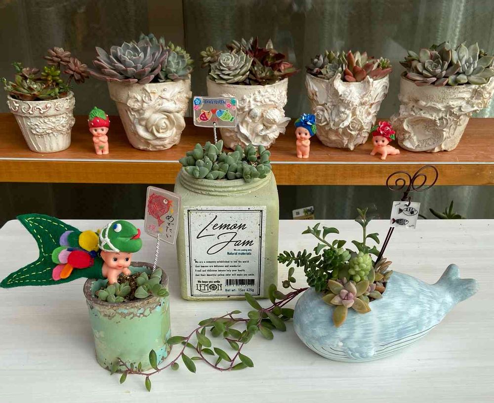 ほーちゃんリメ鉢が並んでると迫力があるね💖😋