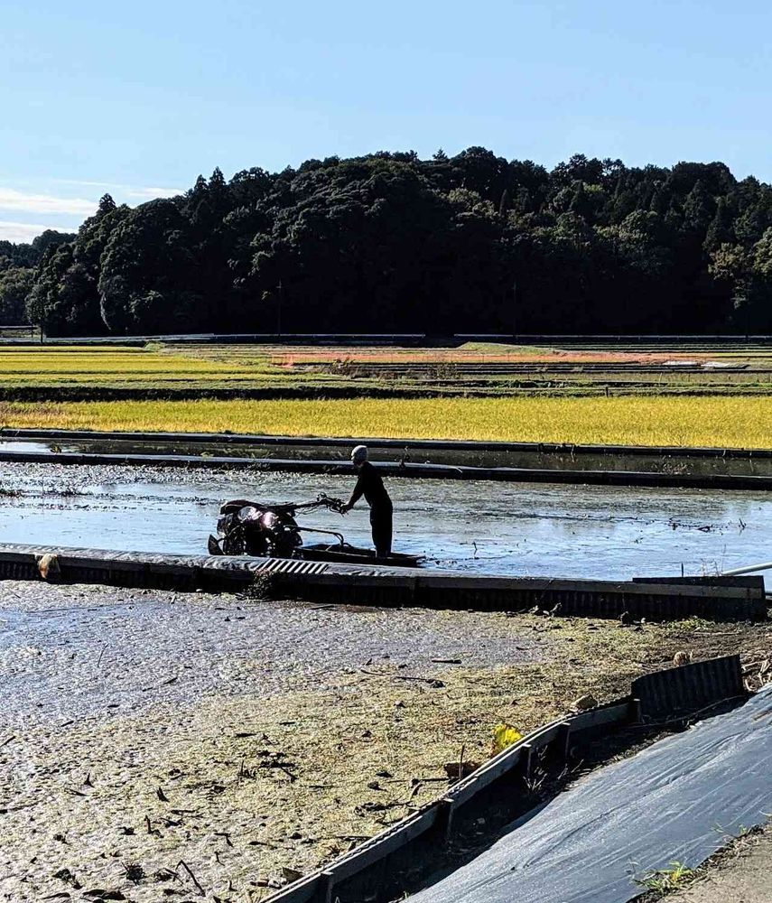 水の上をスイスイ機械で耕していましたがバランスを崩したらドボンですネ😲😳💧💦