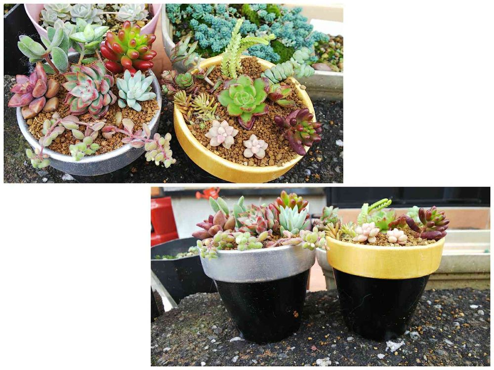 ちっちさんからいただいたかわい子ちゃんたち、だんなに「なにその成金みたいな鉢は…」と言われた金銀鉢に植えました\(^^)/