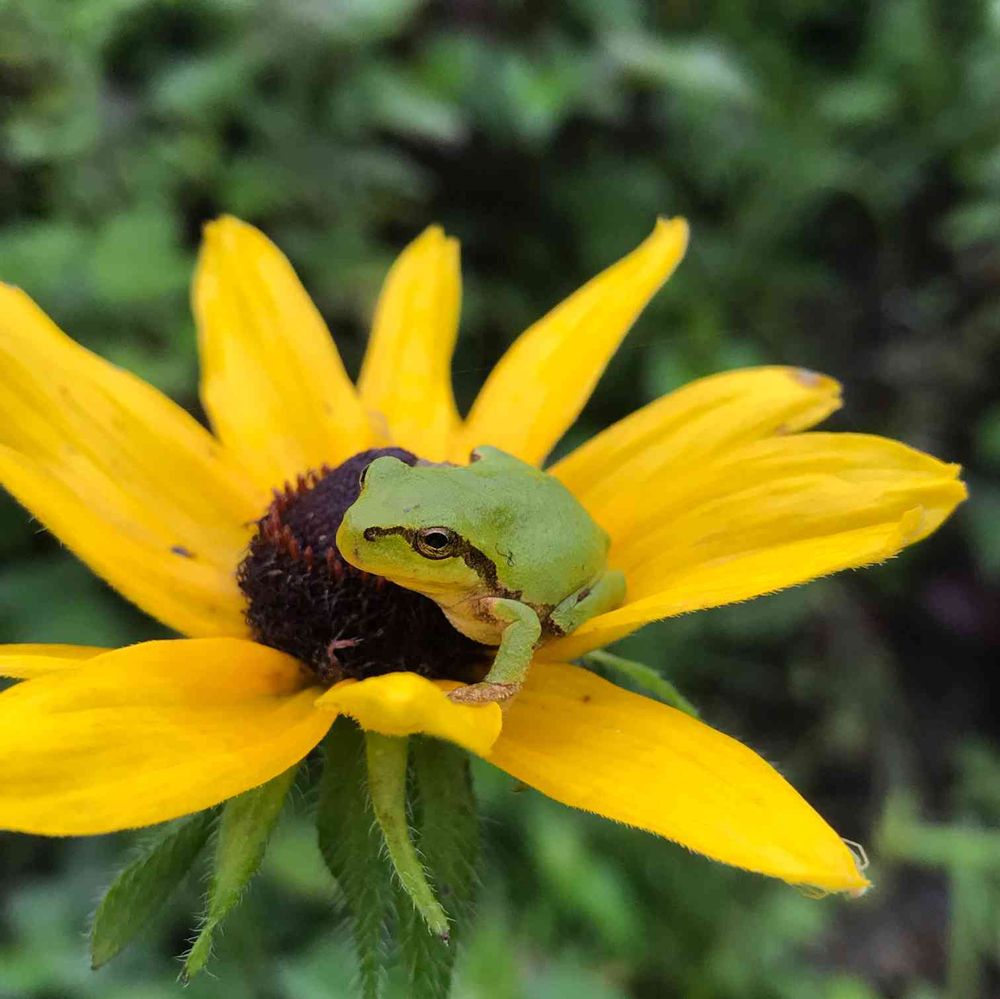 アマガエル君はこの花好きなのかな?いつも乗っかってる(笑)