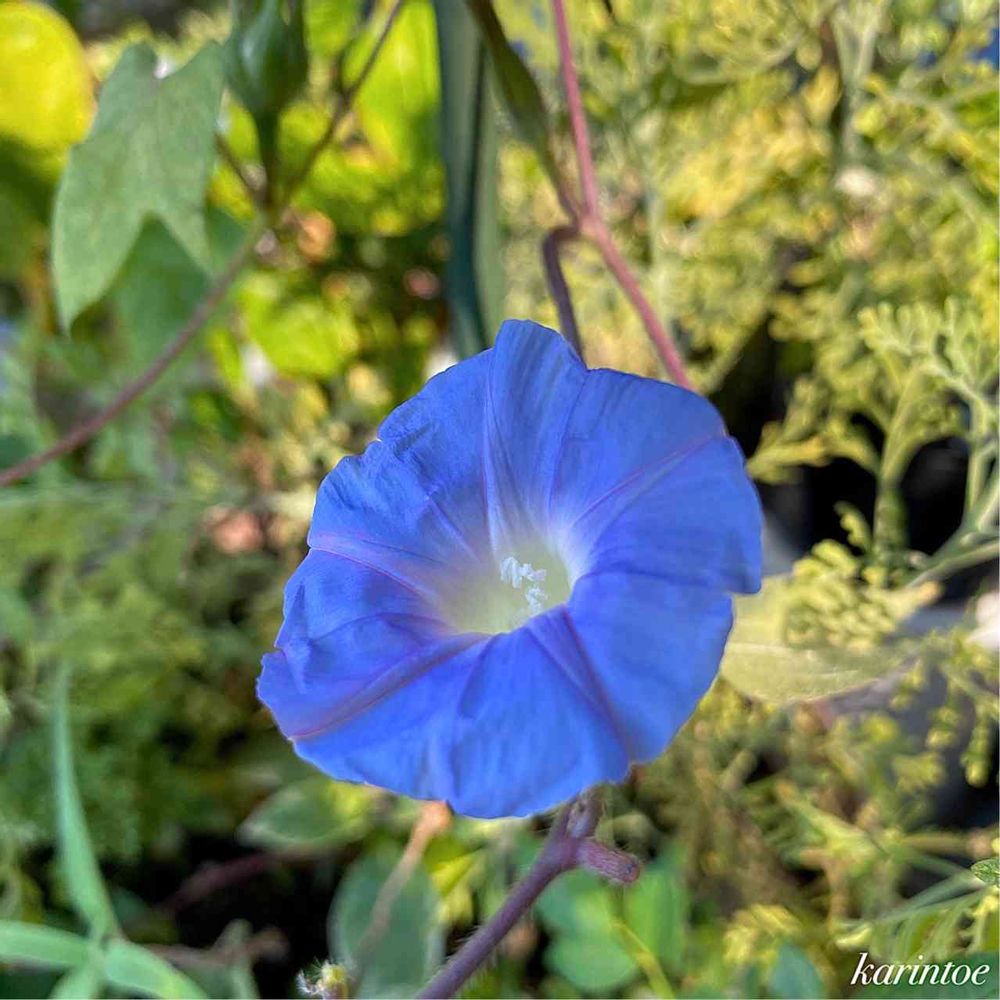 今朝、ベランダに出てみると、久しぶりに朝顔が咲いていました💙朝から冷え込んだからか、ぎゅっと縮こまったような直径3cmほどの小さめの花✨
