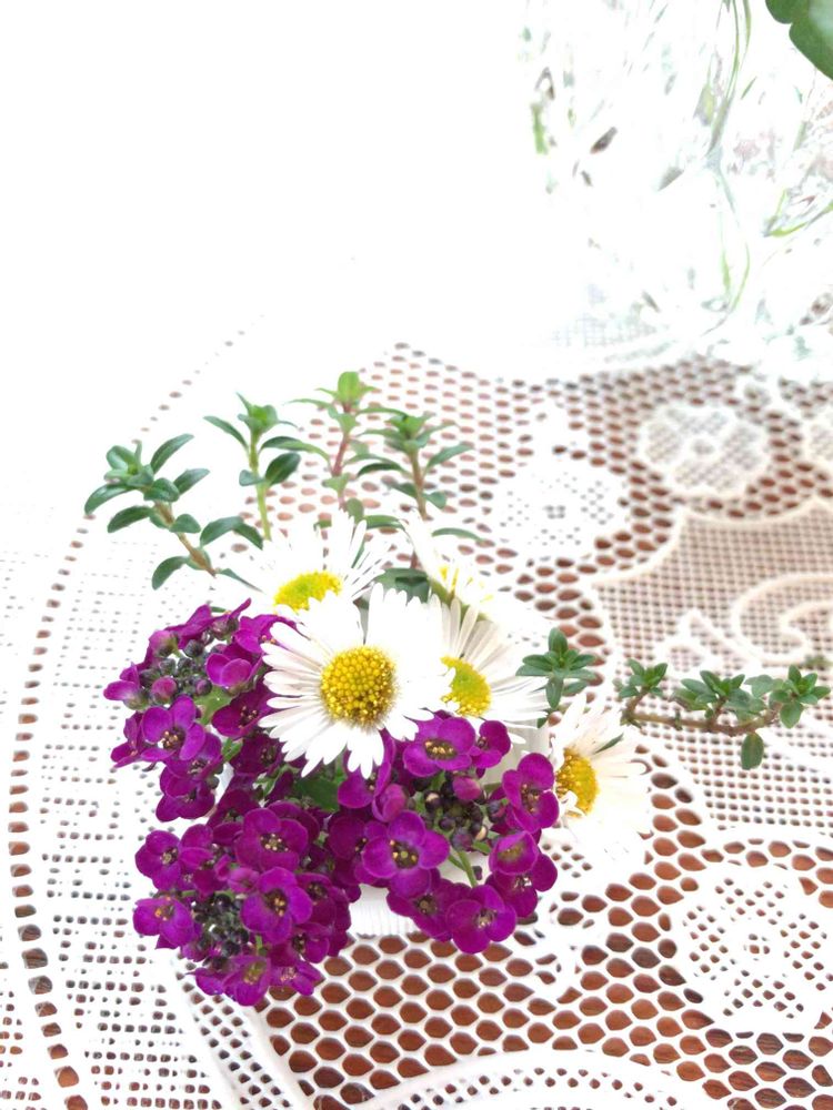 寄せ植えのアリッサムの花が咲き進んで間延びしてきたし、枝数も増やしたかったので、ちょっとだけカット。