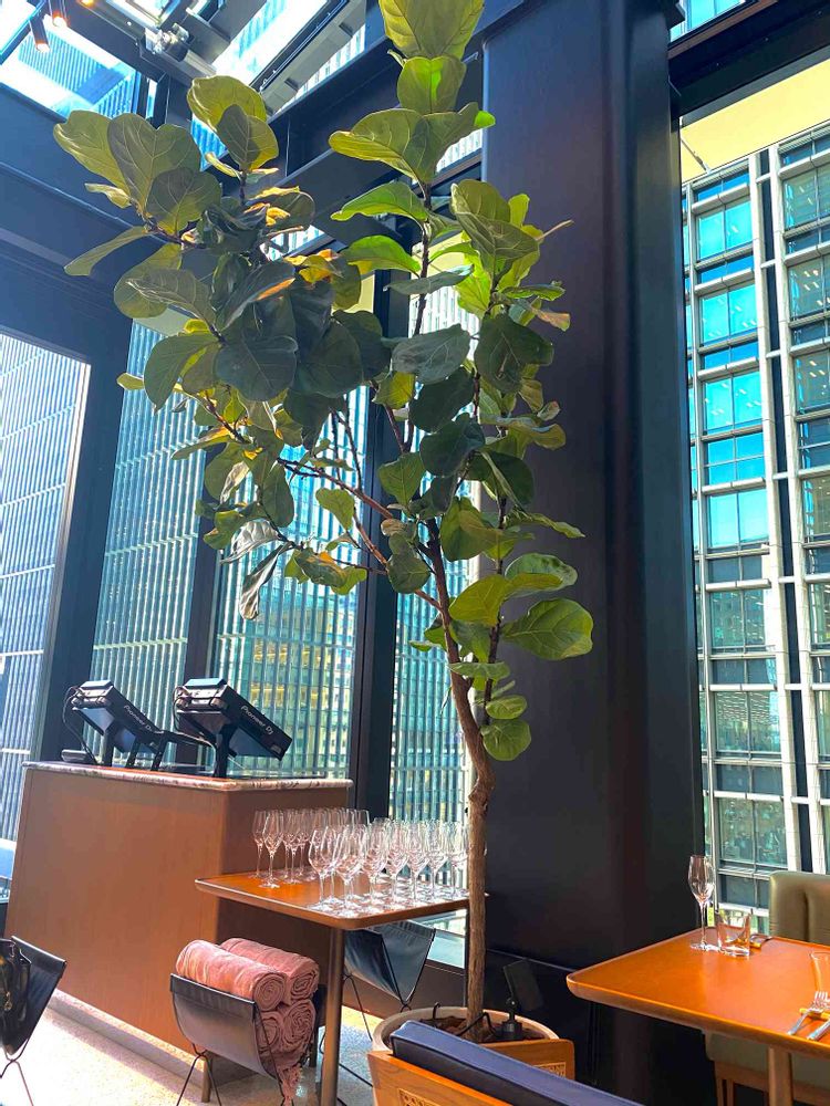 今日は料理の勉強のために🍽丸の内にオープンしたばかりのお店THE UPPERに行ってきました🌿✨3meterくらいある たぶんウンベラータかな❓料理も植物も素敵でした💐✨フィカスリラータという名前みたいです🌿迫力満点💯🌴🌿🌱🍃