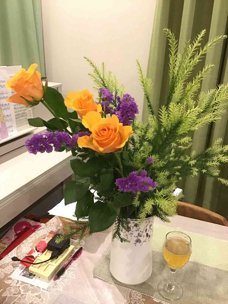 小さな花束を 買い求めましたが、これだけでは 少し 寂しかったので、杉 の 一枝 を 足してもらいました❗️