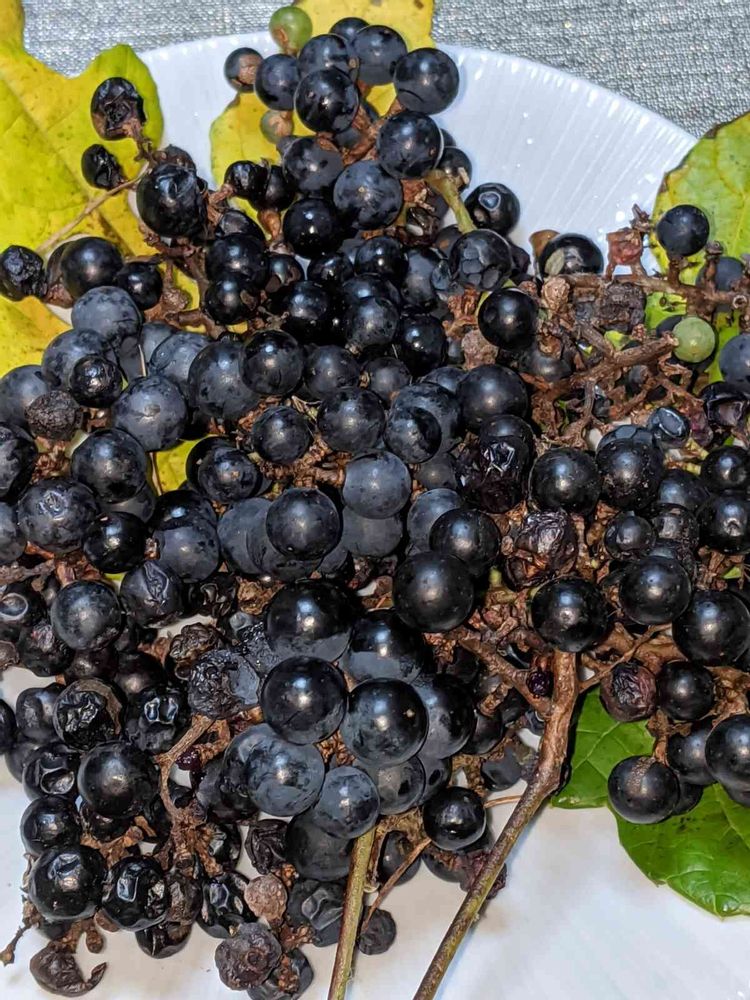 足元にエビヅルの房がいくつもあって、大喜びですよ😄❣️