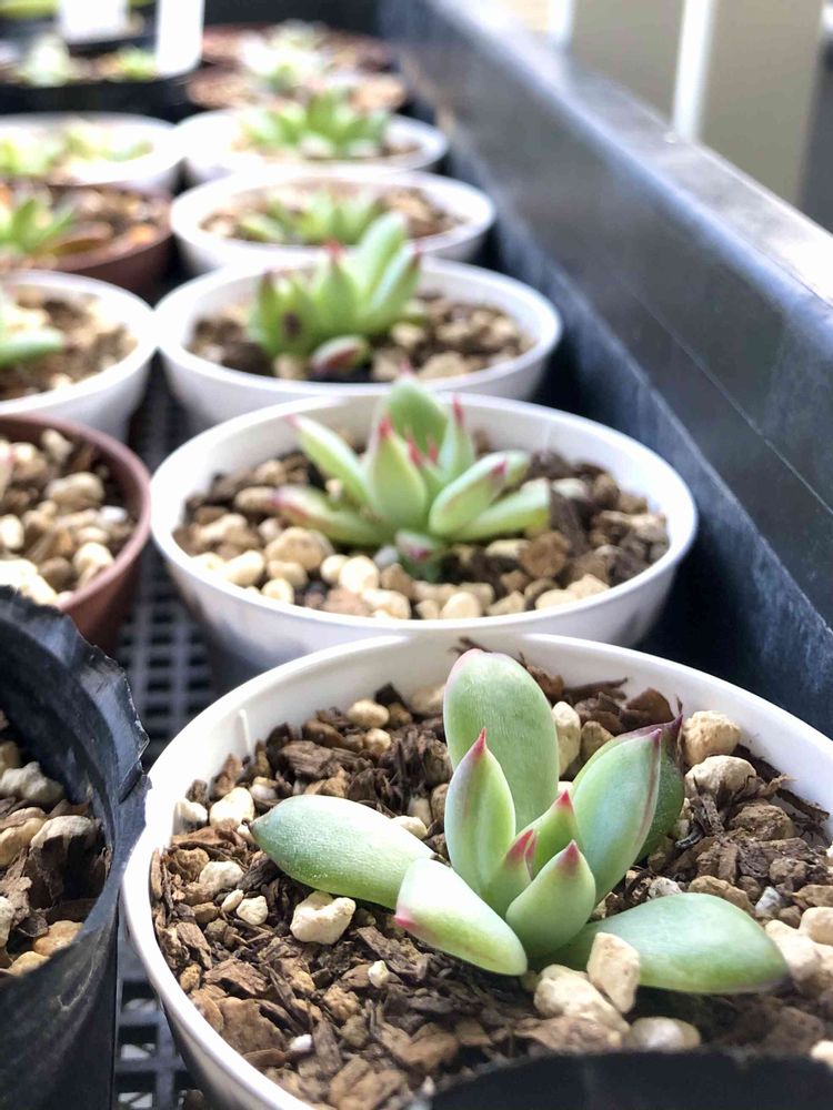 まだまだ先の話になりそうだけど、桃太郎でリース作りたくて葉挿しで増やし中です🌱