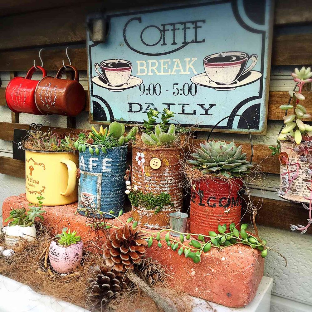 オシャレ~❤こんな素敵(*^▽^)/★*☆♪なカフェがあったら毎日通っちゃいます(*^^*) リメ缶もステキです✨