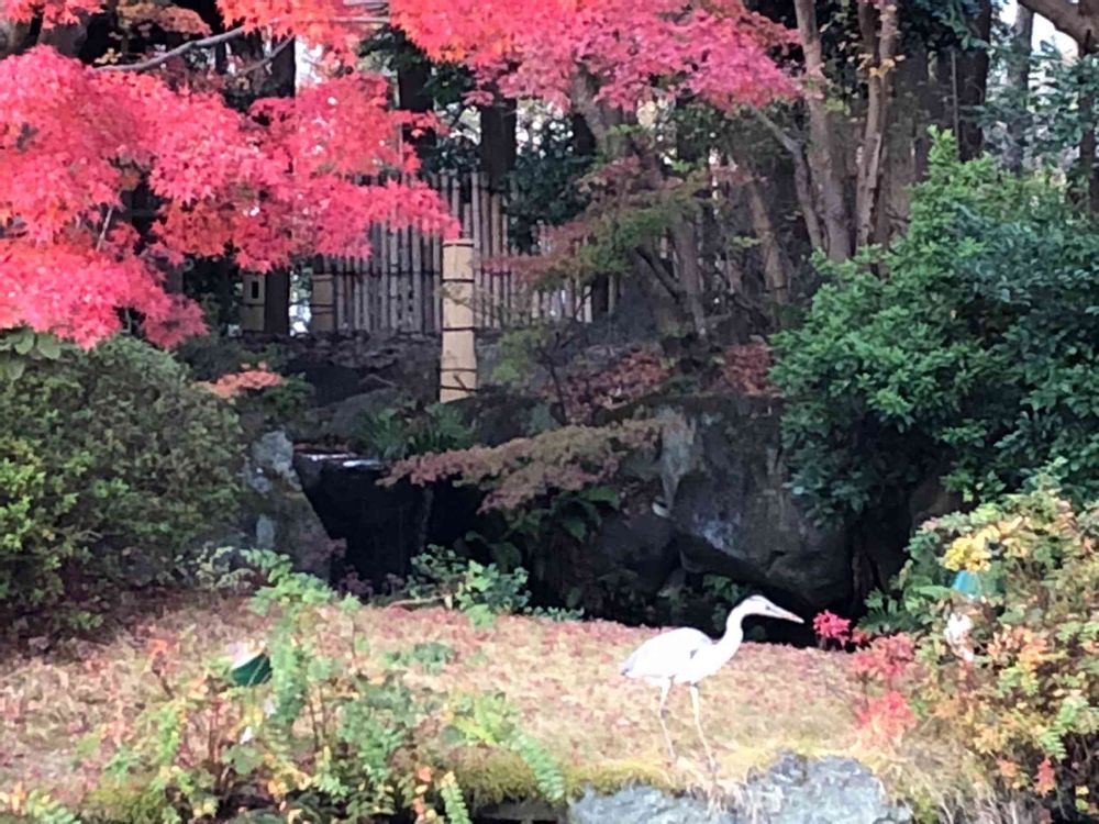 紅葉🍁と白鷺の風景素敵😍