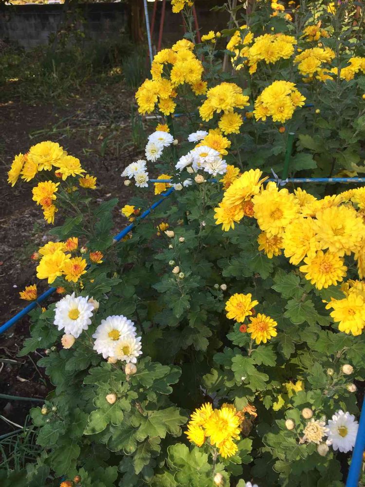 黄色の菊を挿し木したら、その中に白があったらしい🤭