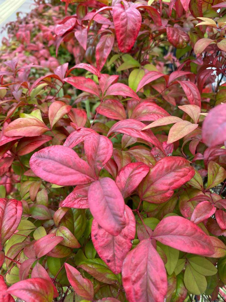 オタフクナンテンの赤く染まった葉