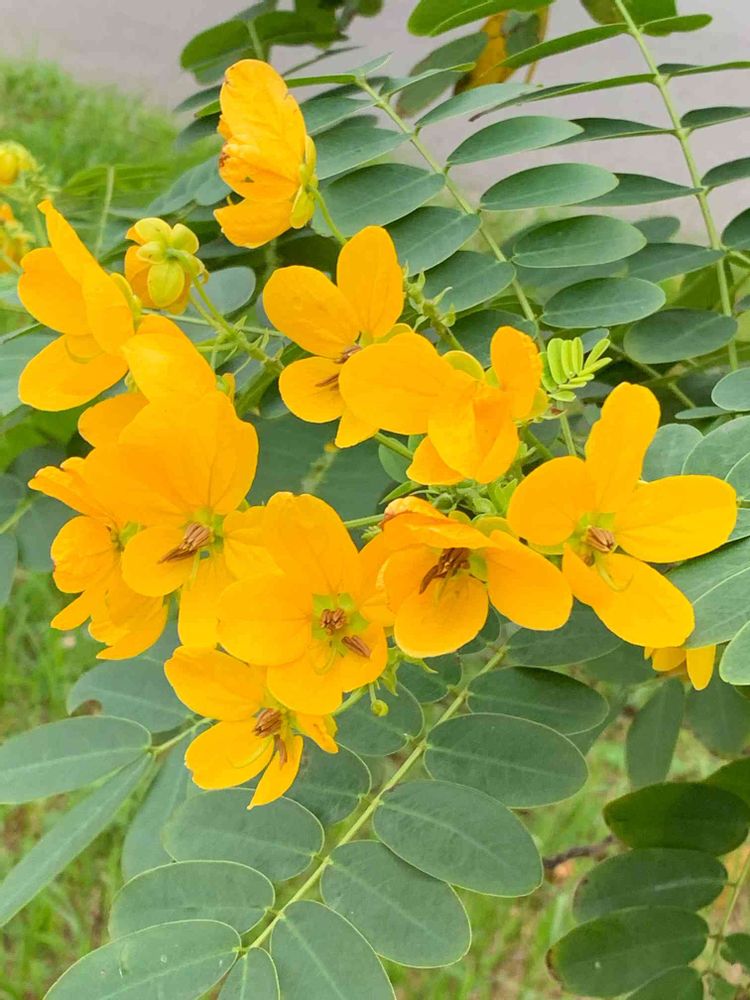 アカシアの花や葉に似ているのでマメ科なのは分かりましたがこの手の花でこの色は🌼新鮮な感じです🌼😁🌼