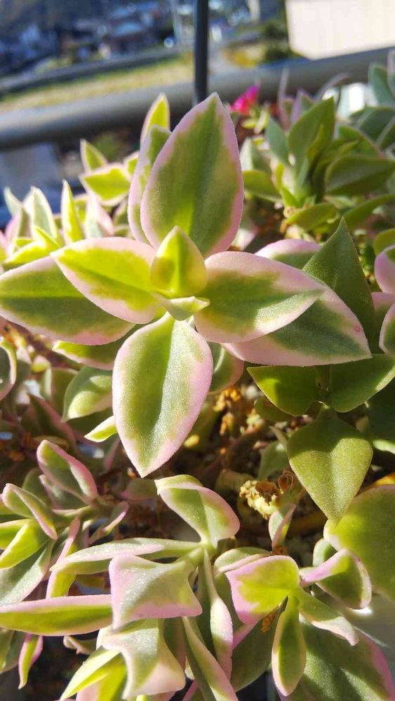 ベビーサンローズの葉の縁が薄ピンクに染まって綺麗😍