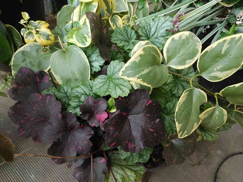ヒューケラ、ハツユキカズラ、シュガーパイン、葉ものが大好きです💕あまり日の当たらないベランダで葉物中心です🌿