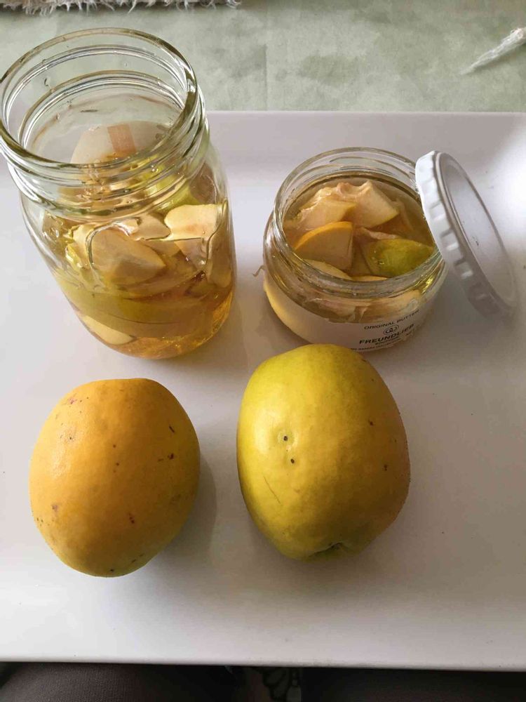 しました 一日で水分がずいぶん出てきましたのでかき回しついでに味見したら花梨のいい香りが蜂蜜についていて美味しいです