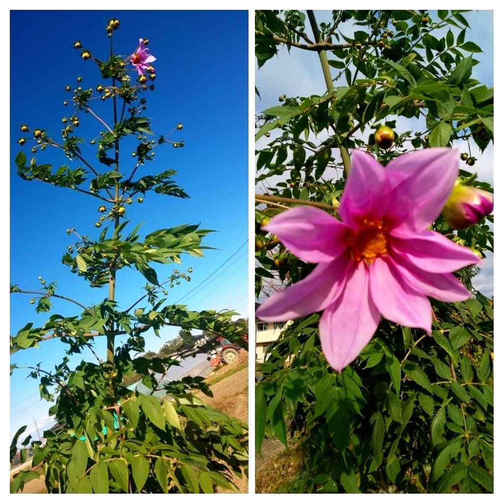 アプローチにある、大きく育った皇帝ダリア🤔今年は、台風🌀霜🌁にもヤラレズ元気に育ってます。まあ多少風🌪️になびいて❗️傾いてますが⁉️💗💗💗💗💗