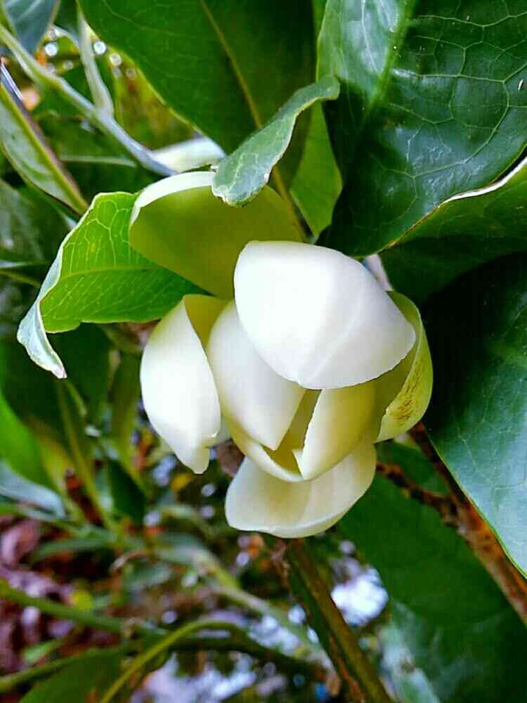 葉っぱの下で、ときわれんげ(ココマグノリア)が咲いてた❗⤴