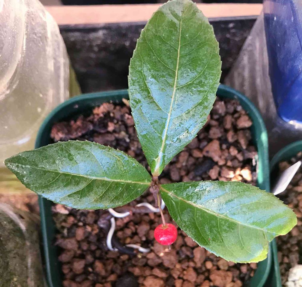 ヤブコウジ 十両という別名があるんですか。千両だか万両があったのにいつしか消えてしまいましたが、ヤブコウジはあちこちに沢山あり真っ赤な可愛い実をつけてくれています。一つの苗にさほど実がつかないから十両なのでしょうね。