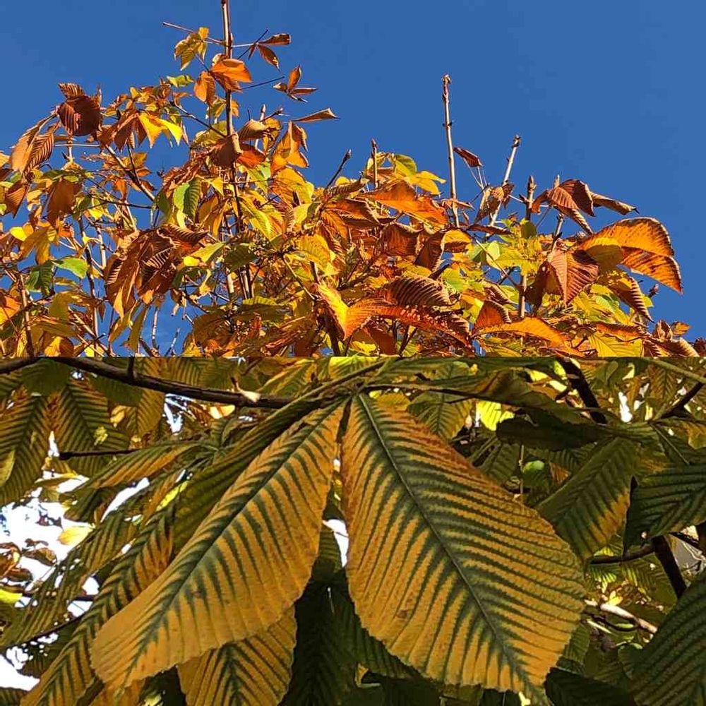 大きな葉っぱで、紅葉の仕方もいろいろでこの黄緑が残っているのがとても面白いと思いました✨🌿🌿🎶😁