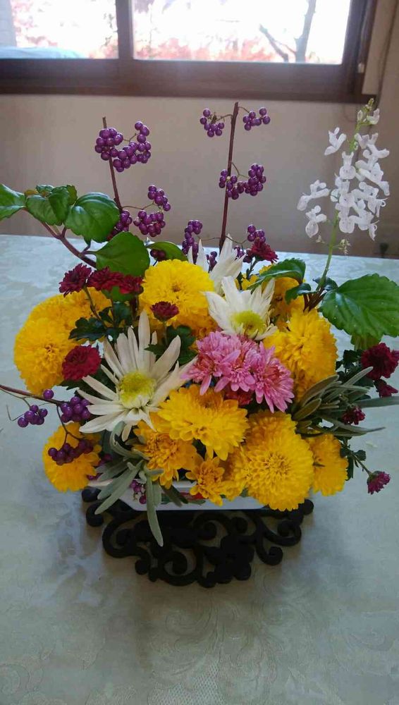 いただいた菊の花、最後まで楽しみたいと思って、短く切ってさしました😂テーブルの上に飾るには、ちょうどいい感じです😊