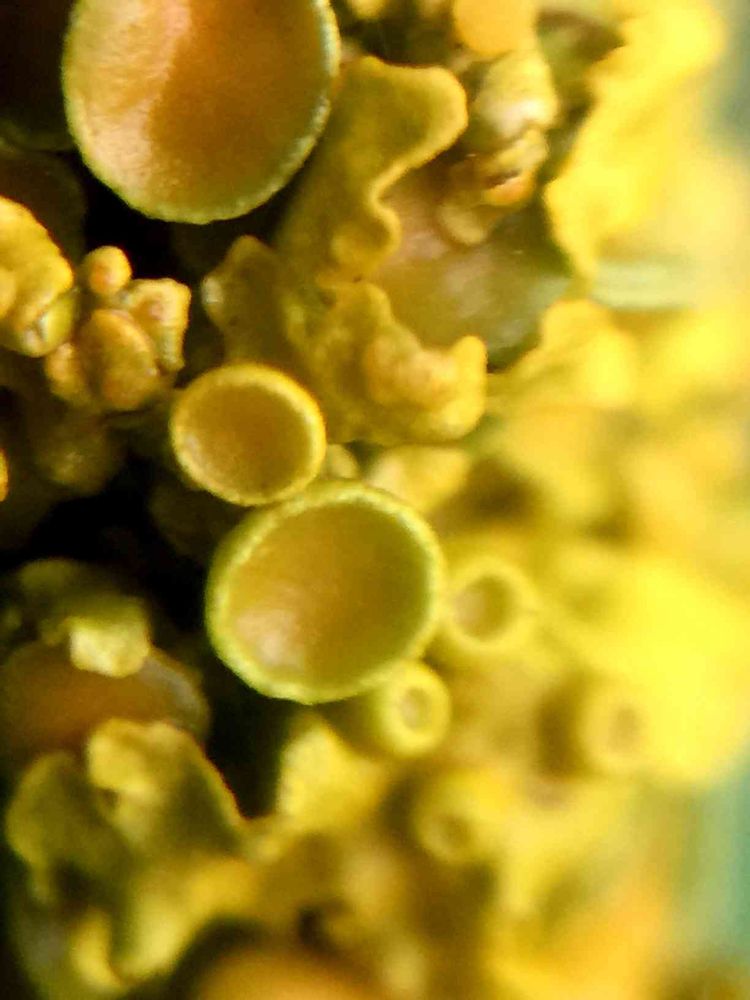 黄色いのと灰色っぽいのがあり、これは黄色いバージョン。地衣類にも名前がありますが、わかんない〜😦