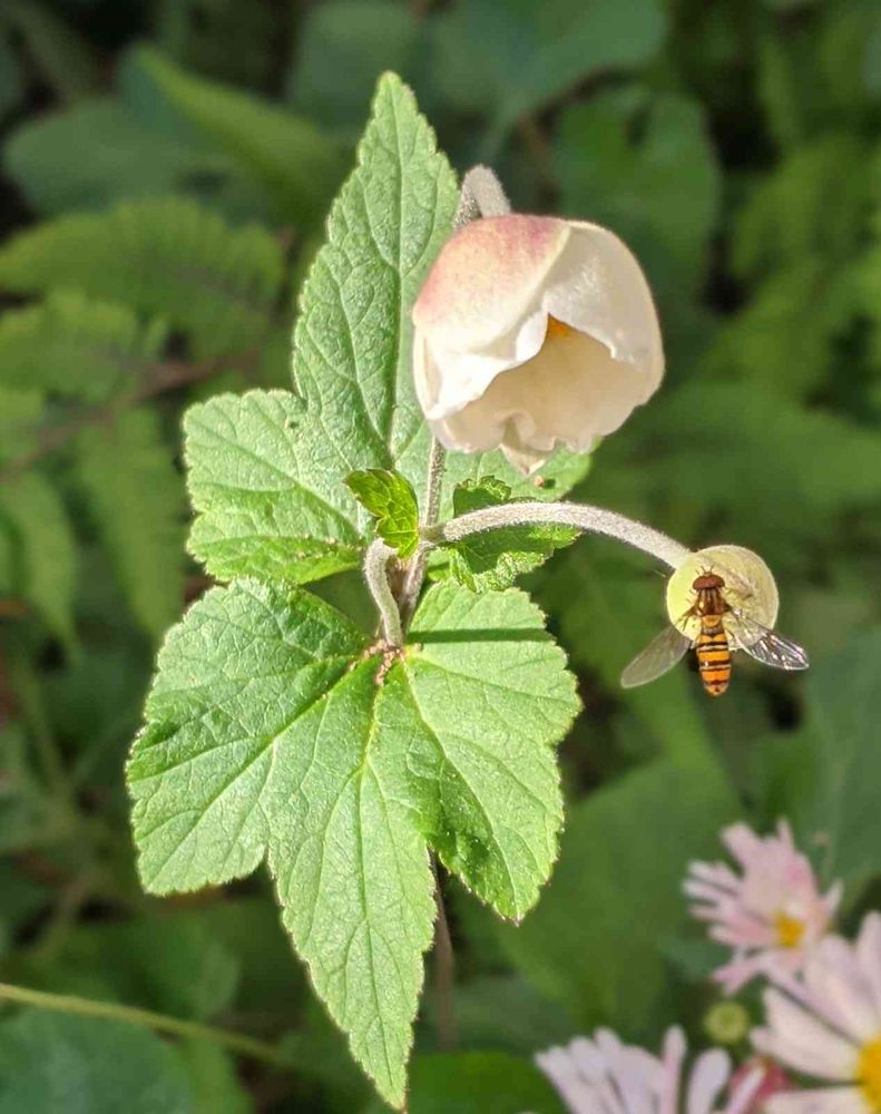俯いたシュウメイギクに蜂さんが話しかけて…🐝