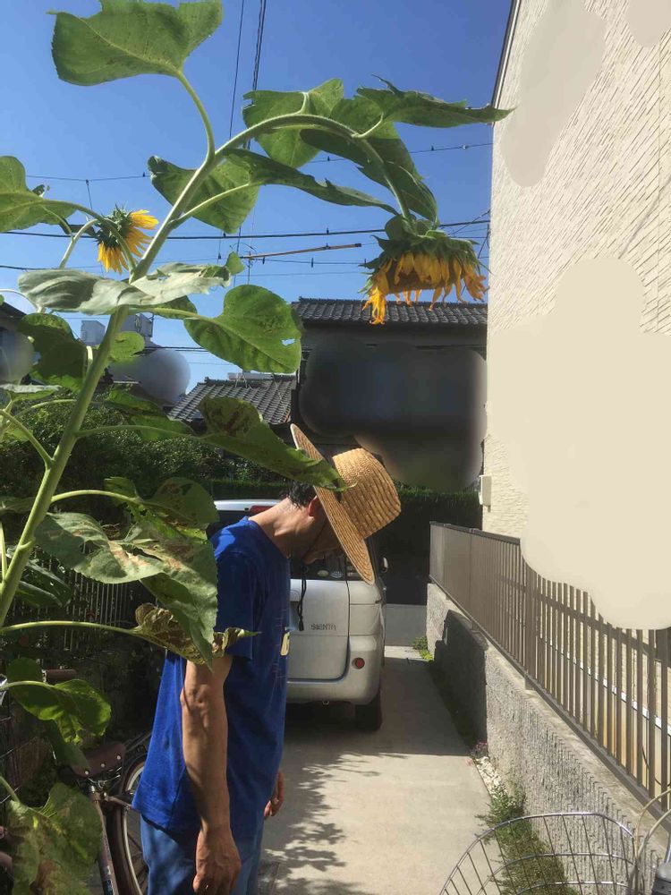 うちの旦那も時々、やらかしますよ。草だと思い、草刈機で刈ってしまったり、除草剤を撒いたり、💦反省はしないですね。それにしても、ひまわり🌻立派ですね💕