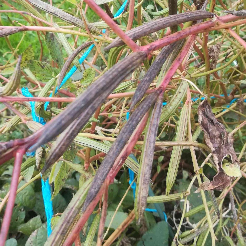 今年初めて種まきしたモロヘイヤの莢がそろそろはじけそうな気配である。