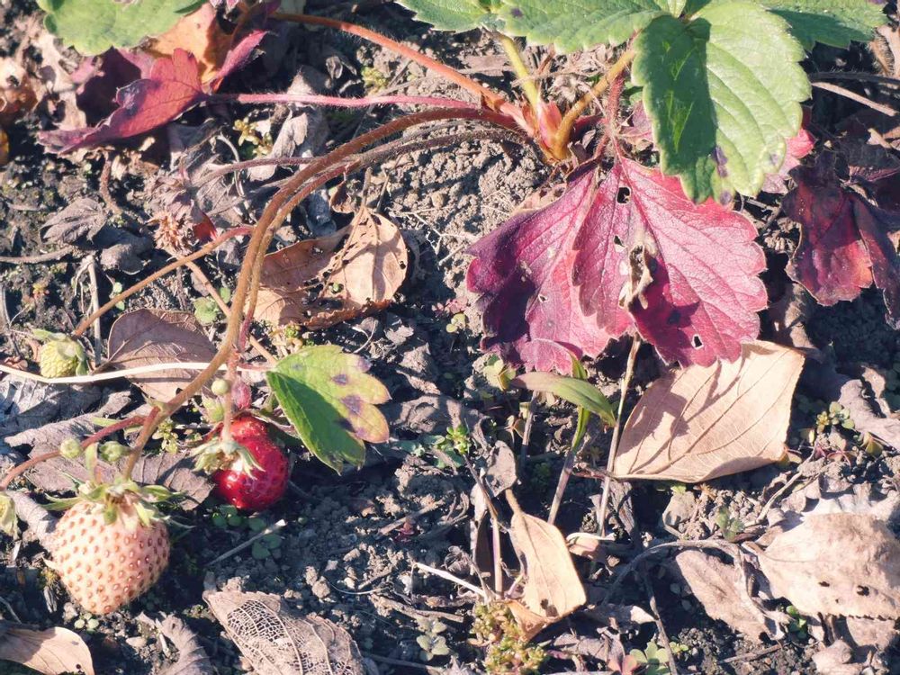 庭で、いちご🍓を育てています。毎年、この時期葉っぱの下のほうから赤く紅葉し、日中暖かいと可愛い「実🍓」が実ります。