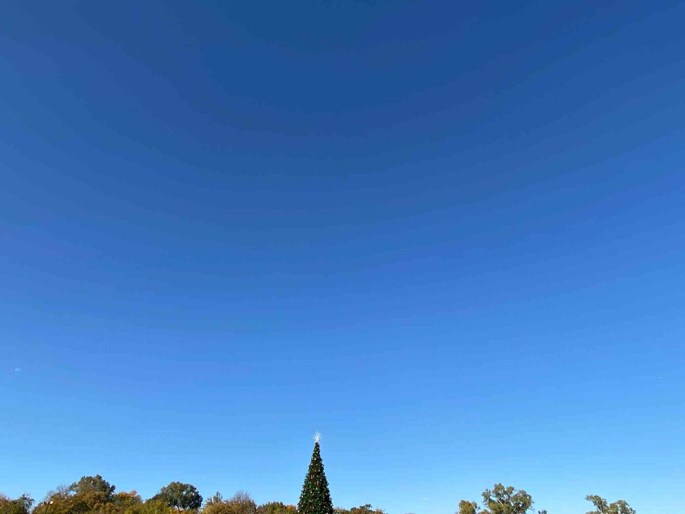 公園には、例年より早く巨大なツリーが飾られています。コロナ渦でみんなストレスが溜まってるから、明るくするため!