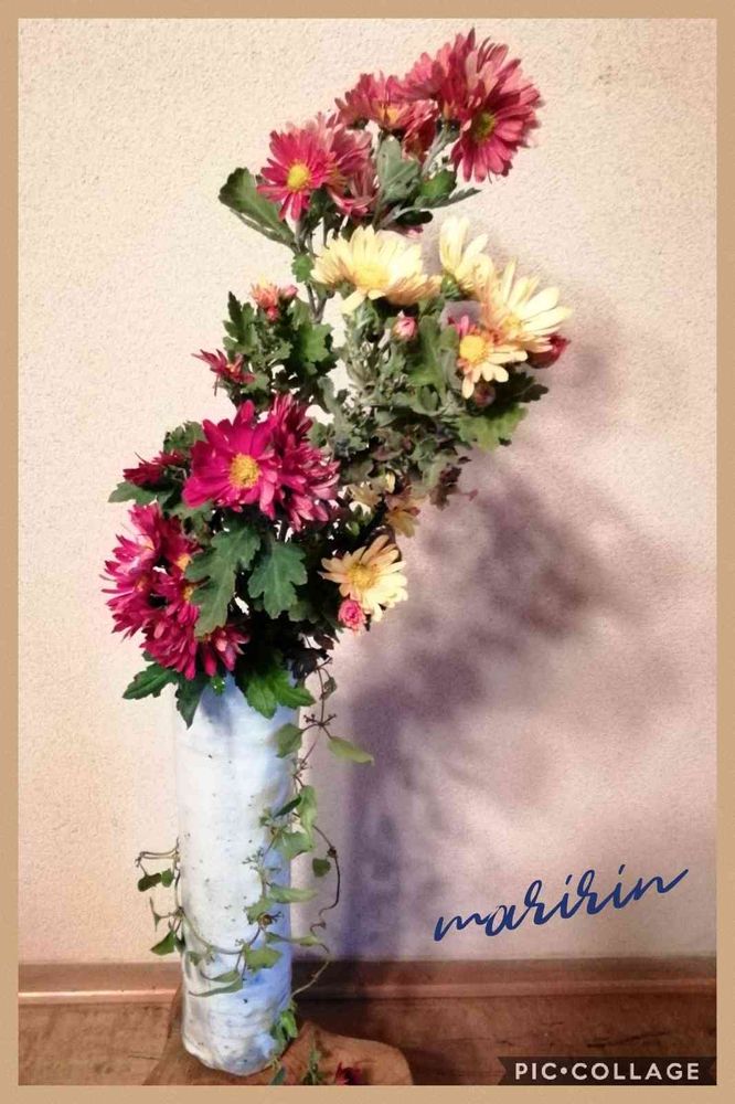 スプレー菊のアレンジも凄いですが、絡まる蔦の使い方が凄いです😳❣️