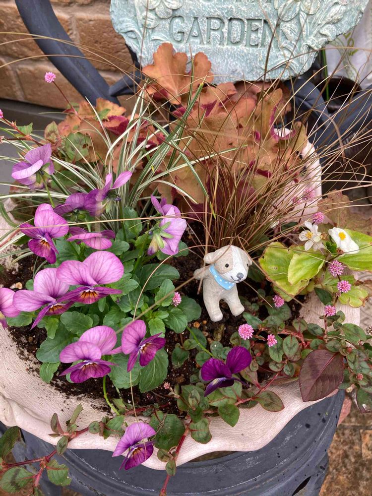 前の投稿の暑い夏から、転がしてた鉢にたまたま可愛いビオラ🌸がしっくりきましたよ🍁