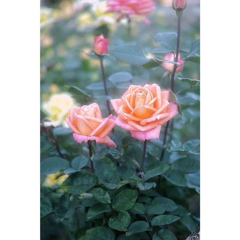 剣弁高芯咲のしっかりしたお顔だち、ピンク混じりの鮮やかなオレンジ🧡のバラさん達で♫