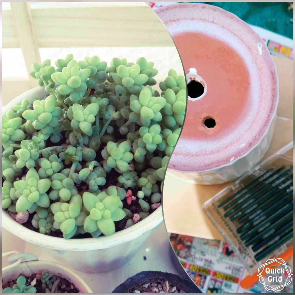 再び鉢底穴の投稿です。今度はダイソーの鉢。テラコッタに塗装が施されてます。