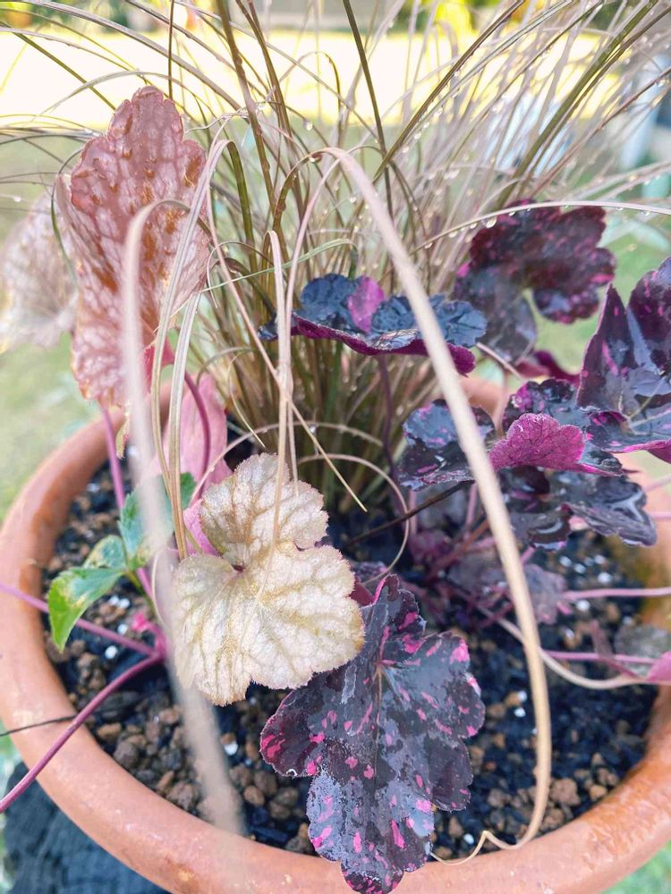 おうちで増えた子たちと、本日お迎えしたピンクのペンキを散らしたようなヒューケラちゃん♡