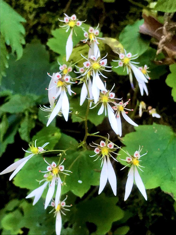 菊池渓谷にて。11月になるのにジンジソウ(人字草)が一株、満開の花をつけてました。