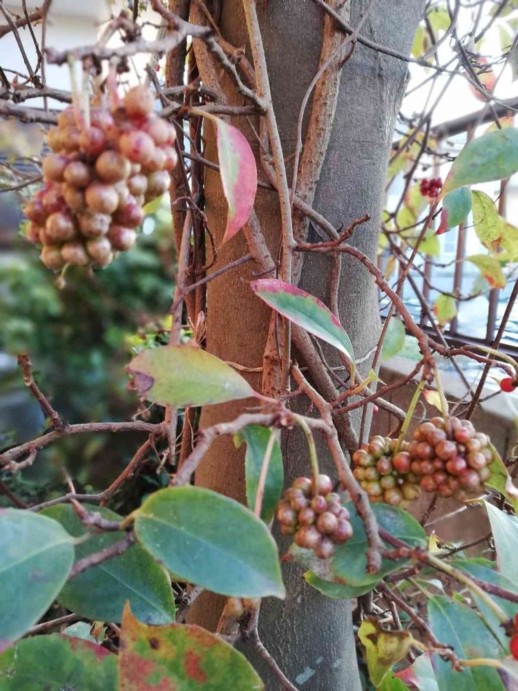 ビナンカズラの実 いつもなら 鮮やかな赤なのに 近所で工事をやっていて 排気ガスにやられたのかも😗