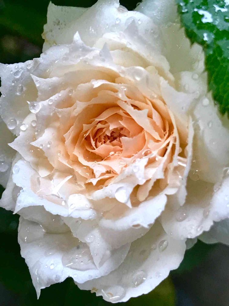 雨でびしょ濡れなのに、美しい💕ですね。淡いアプリコットから白に変わるグラデーションがステキですね✨✨(ू•ω•ू❁)ଓ♡⃛