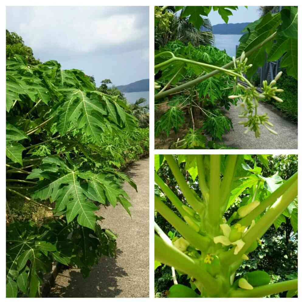 海まで下りる道🐠パパイヤだとおもうのですが✨花が咲いていたり、小さな実が成っていたりしていました✨