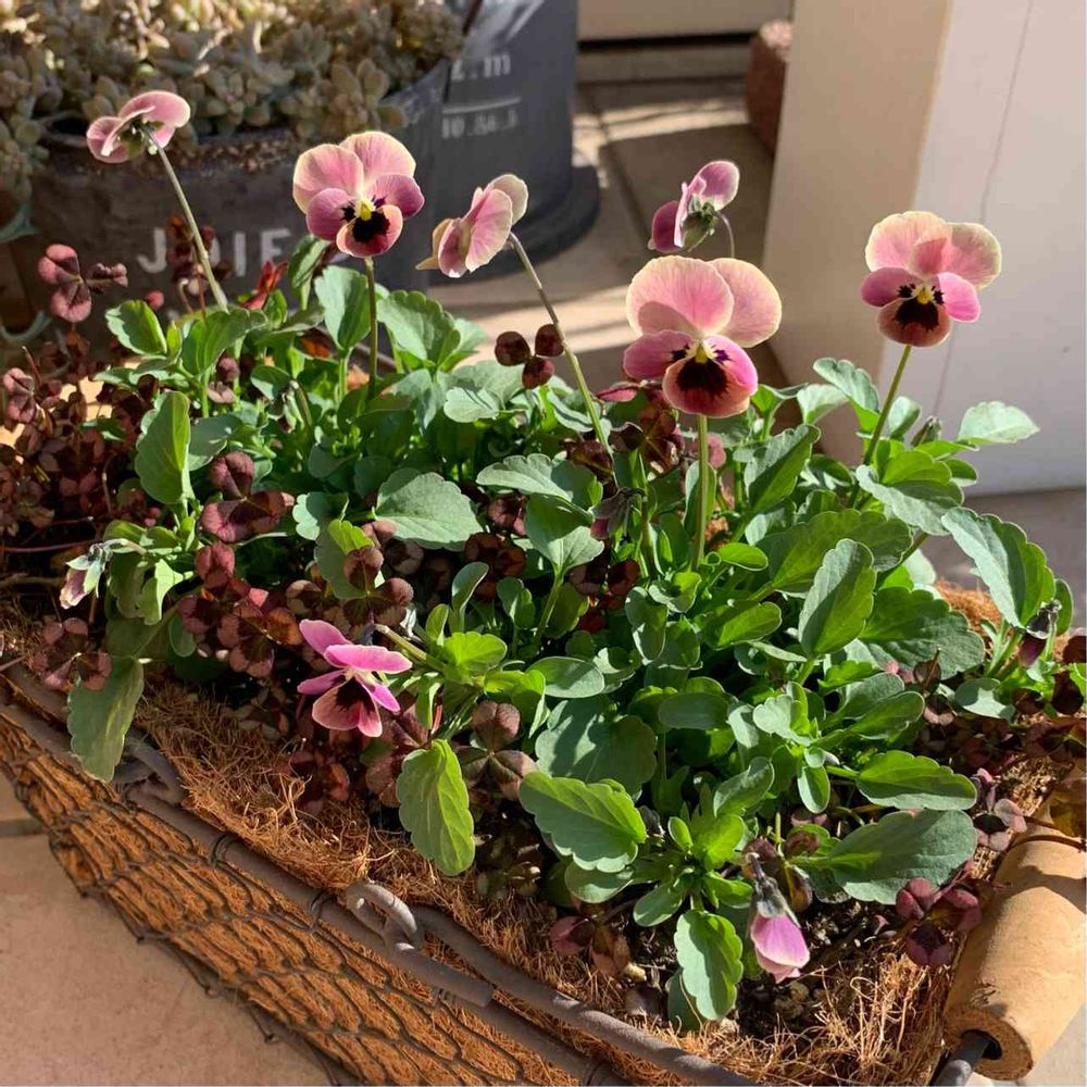 先日寄せ植えした見元園芸さんのビオラ、ピンクコアラさん🐨とクローバー🍀のBEAUTYさん✨