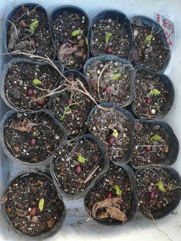 越前赤空豆。春に自家採種したものを播いておいたものです。すべて発芽しているかな?よしよし。