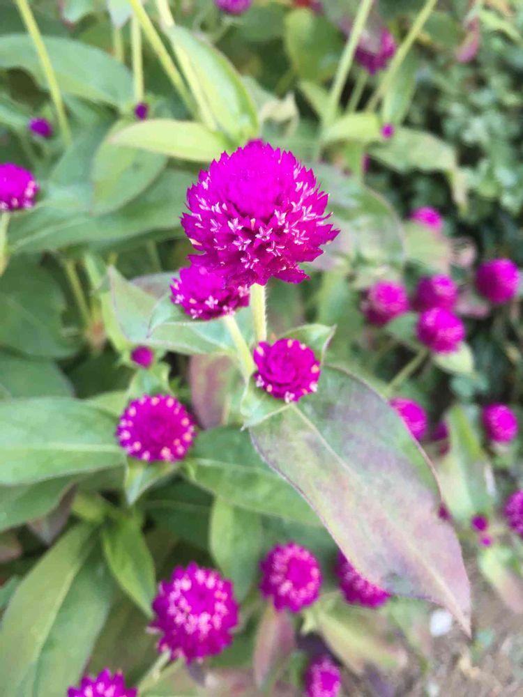 千日草,ピンクの花,赤い葉っぱの投稿画像