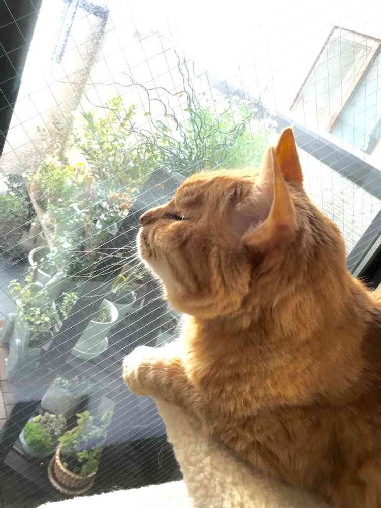 うちのミーコもキャットタワーから外を見張ってますよ!