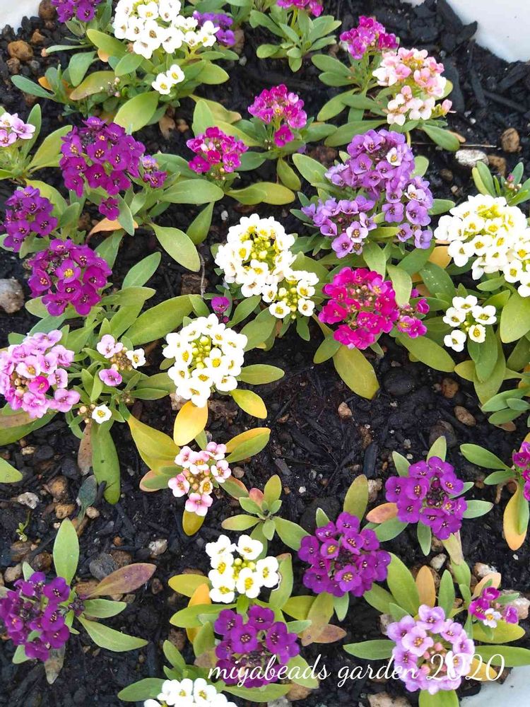 アリッサム、4色良いなぁ。種からなんですね。ひとつひとつにもう花が咲くなんて元気なアリッサムですね〜👀