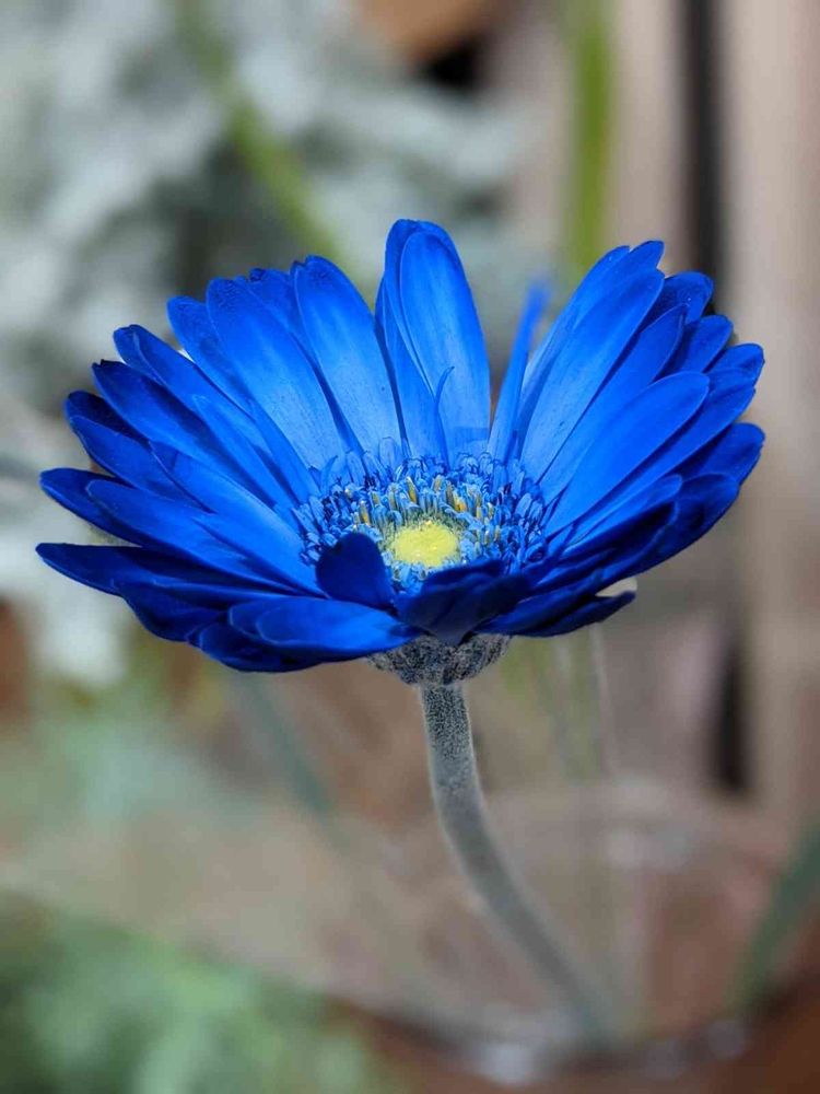 ガーベラは色別の花言葉もあるのですが流石にブルーはありませんでした(笑)